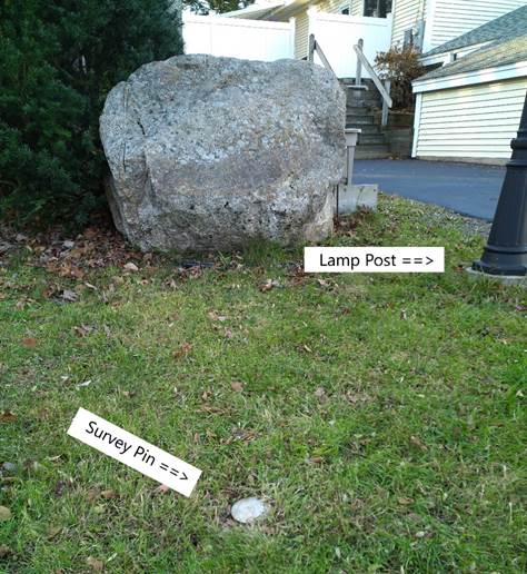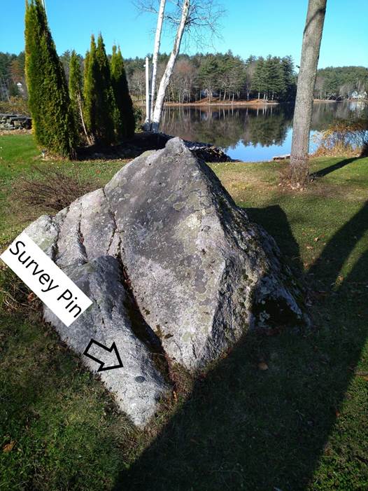 Survey is a brass Survey Mark placed in the low corner of the bolder at the