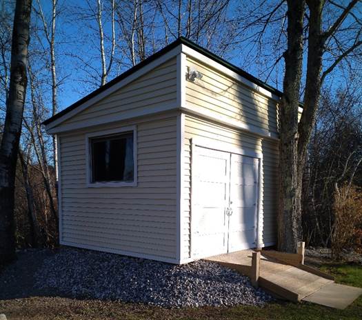 Shed was built on an insulated, raised riprap and smaller stone pile