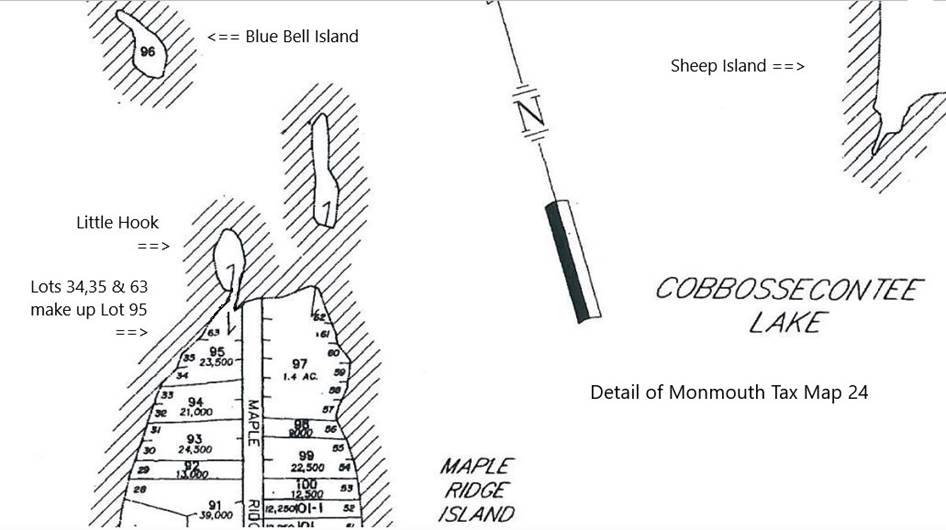 images of Maple Ridge Island with approximate boundary lines of Lot #95 (119