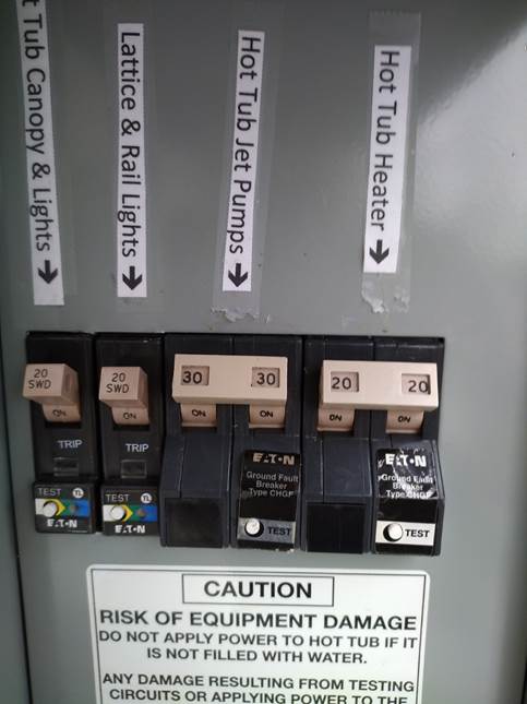 Tub Controls and its circular pump (30 Amp Breaker). 4. You